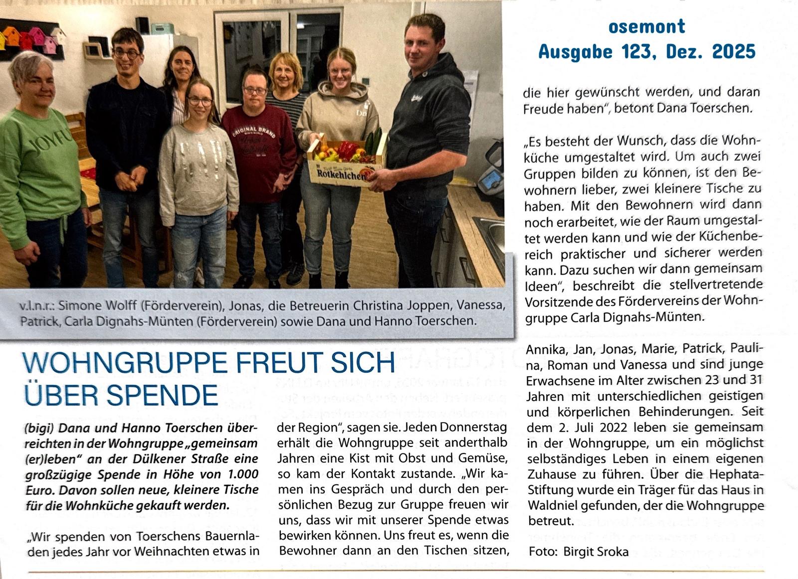 Unser Förderverein unterstützt die hilfs- und pflegebedürftigen Bewohner*innen der Wohngruppe „gemeinsam (er)leben“, Dülkener Straße 112a in 41366 Schwalmtal-Waldniel.