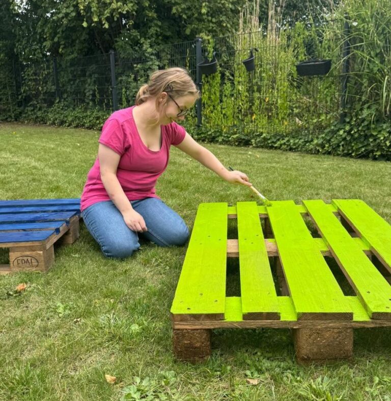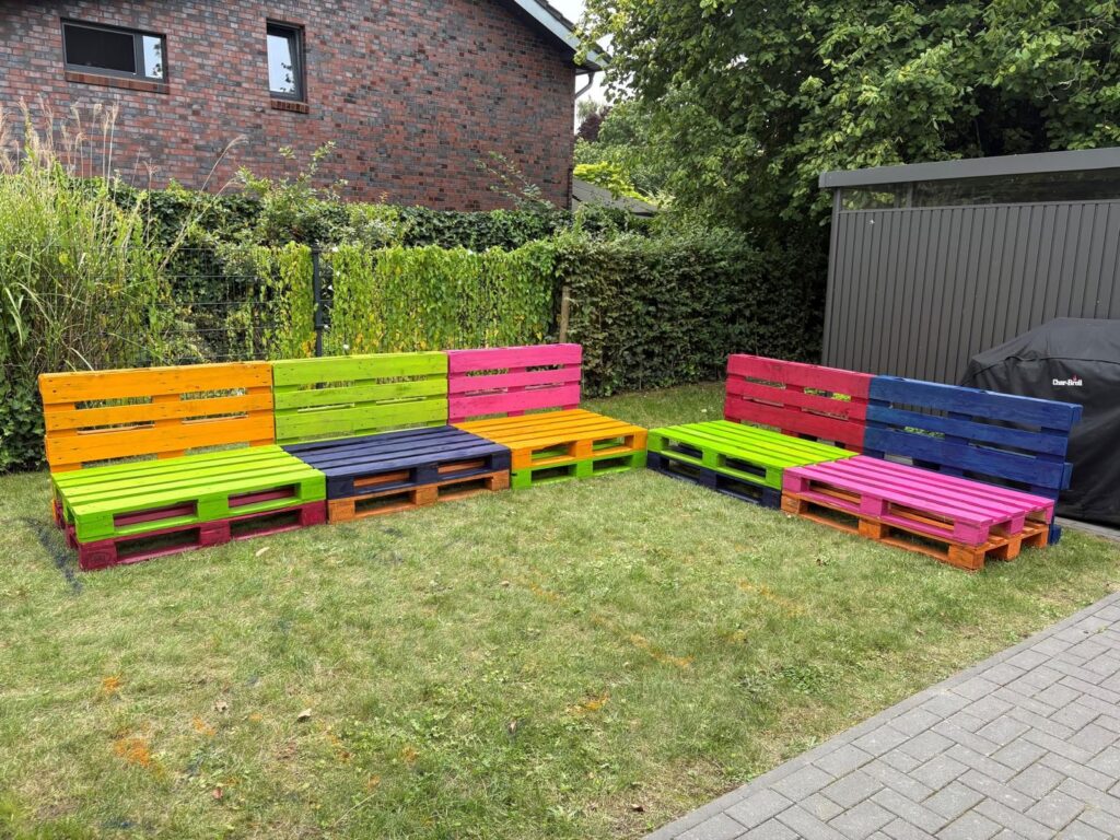 Im August hatten wir alle zwei Wochen Urlaub. In der ersten Woche haben wir mit vereinten Kräften unseren Garten verschönert und u.a. Paletten für eine Gartenlounch bunt lackiert. Das war ziemlich viel Arbeit, hat aber mega Spaß gemacht!